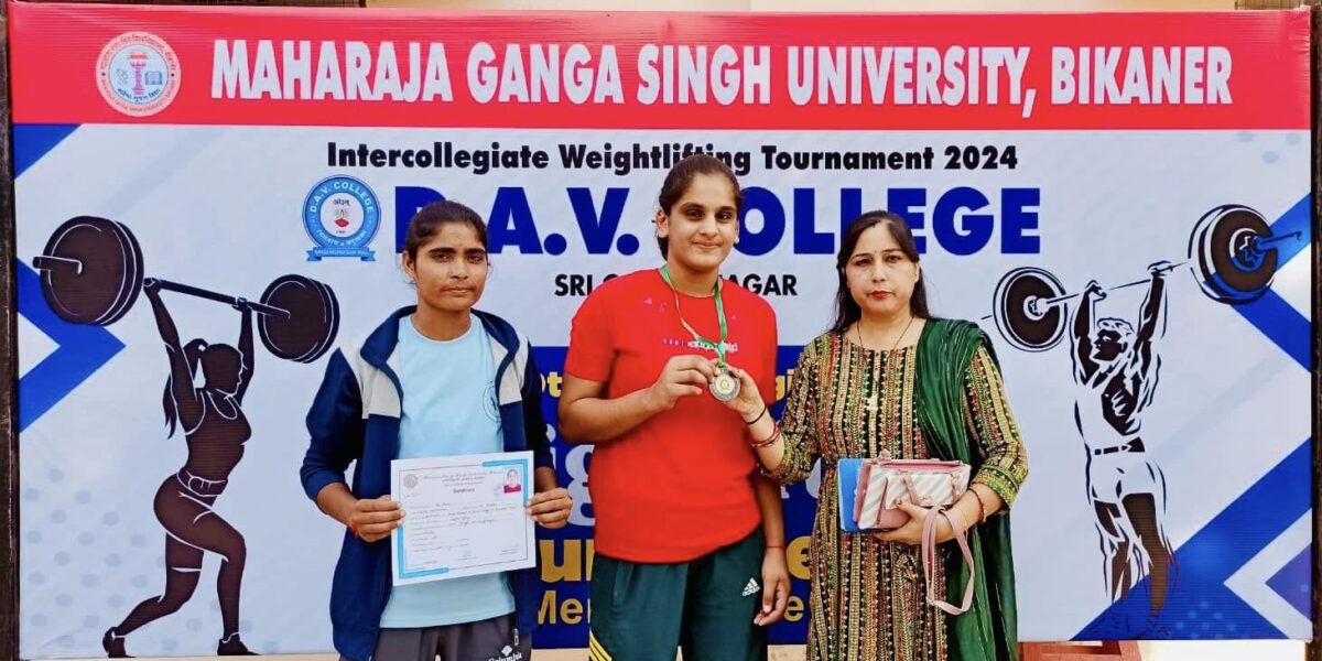 Read MoreMany Congratulations 🎉💫to our weightlifter 🏋️♂️ Arju D/O Mr.Vedh Prakash from BA First Year who brought laurels to our college by bagging bronze 🥉medal in Inter College Weightlifting Championship 2024 🏆held in D.A.V. College SGNR .It was organized by Maharaja Ganga Singh University Bikaner .She scored third place in 71 kg weight category leaving behind […]