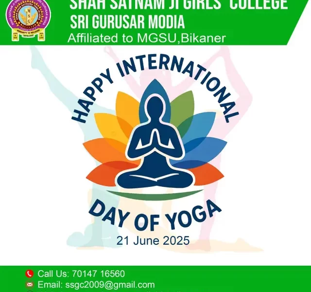 Read MoreOn the occasion of International Yoga Day, Shah Satnam Ji Girls’ College, Sri Gurusar Modia, celebrated the essence of holistic wellness and ancient Indian wisdom through a vibrant yoga session held on 21st June 2025. The event witnessed enthusiastic participation from students and faculty members, who came together to perform various yogic asanas under the […]